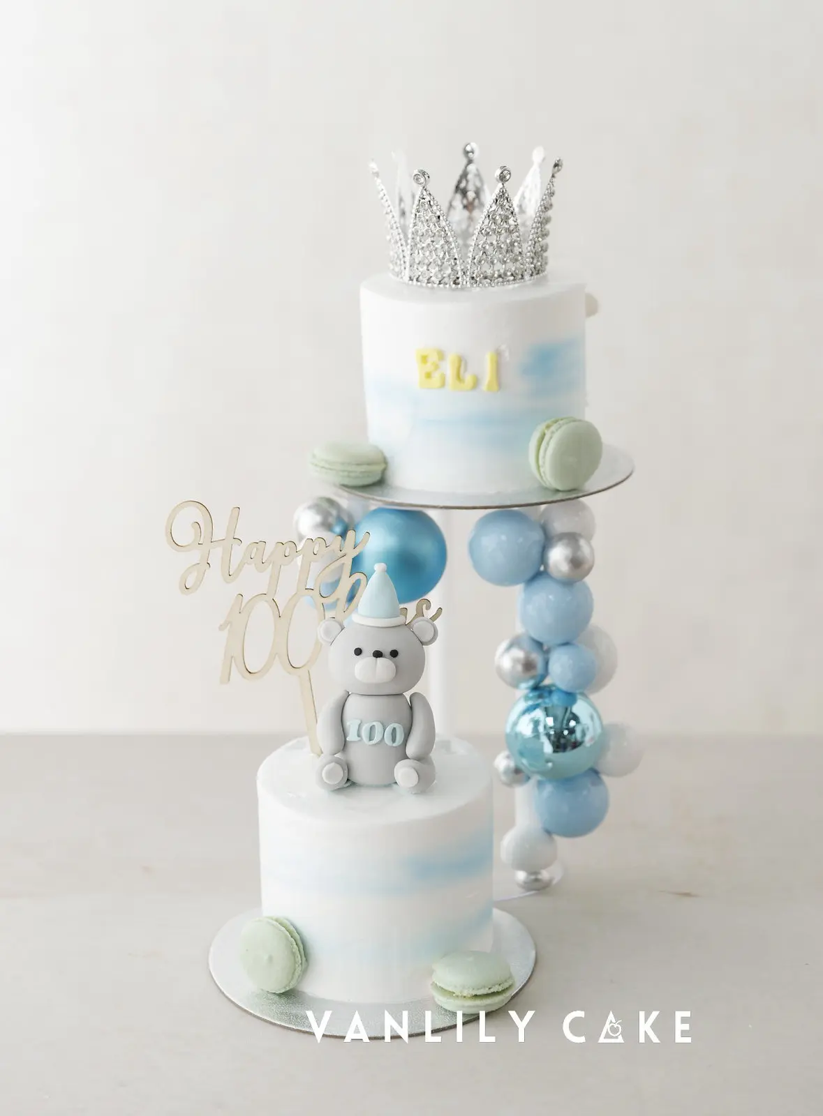 上層無糖蛋糕BB食, 下層低糖蛋糕大人食, 一家齊齊享用, 以低溫2小時焗製的蛋白脆脆波板糖做裝飾, 香甜鬆脆!